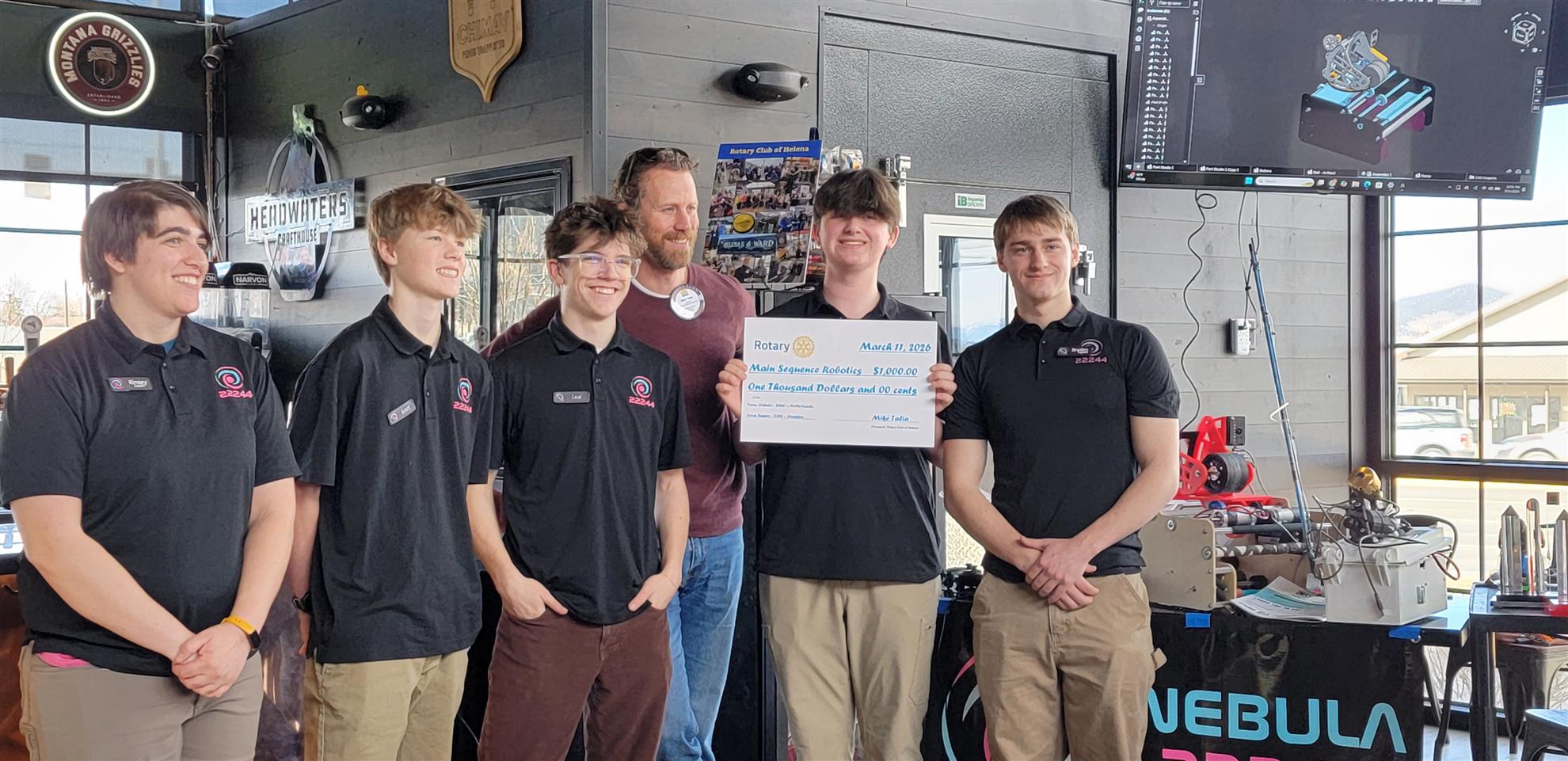 The Nebula Robotics team visited our Club to share a few of their robotic designs with us. These bright young people are learning valuable skills that will be useful as they continue on to college and future careers. Our Helena Rotary Club was excited to be able to present a $1000. donation to the team to go towards their goal of raising enough for the team to travel to the Netherlands to compete this June. They have a 501c3 nonprofit organization and they've made it easy to donate and learn more about their goals and what they do. https://sites.google.com/mainsequencemt.org/nebularoboticsmt